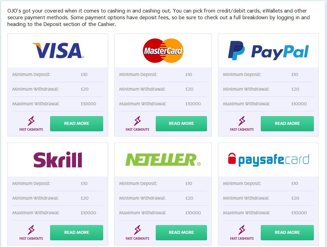 French Down payments and Withdrawals PlayOJO supports a concentrated series of
